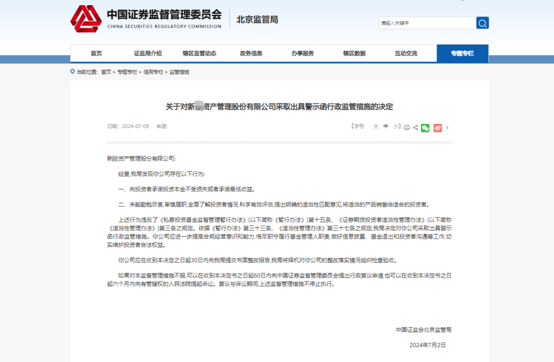 今年以来,无论是私募机构被注销的数量,还是中基协的罚单数量,都超过了去年,印证了私募行业在严监管的背景下加速出清。7月9日,北京证监局下发了两则监管函,其中一则关于新X资产。