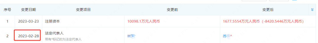 而根据中基协《私募投资基金登记备案办法》及配套指引规定,私募管理人的专职员工应不少于5人。针对员工不足5人的情形,中基协此前也统计了截至2024年5月16日,在AMBERS系统及从业人员管理平台填报的专职员工不足5人的私募管理人信息,要求管理人对照《登记备案办法》及配套指引要求,开展自查并及时整改,不得因人员不足影响私募基金管理人经营业务有效运转。如后续仍不符合要求,协会将根据《登记备案办法》相关规定,视情节严重程度,在前期公示基础上,采取书面警示、要求限期改正、公开谴责、暂停办理备案、限制相关业务活动以及注销私募基金管理人登记等自律管理或纪律处分措施。据上图信息所示,这一家“员工凋零”的私募还是一个管理规模将近百亿的私募股权、创业投资基金管理人。另外,更让人咂舌的是,该私募工商层面的法定代表人其实已经在23年2月由林X变更为苏X了,但中基协层面查询却发现该机构登记的法定代表人仍还是林X(其中基协机构信息最后更新时间2024-04-08)。
