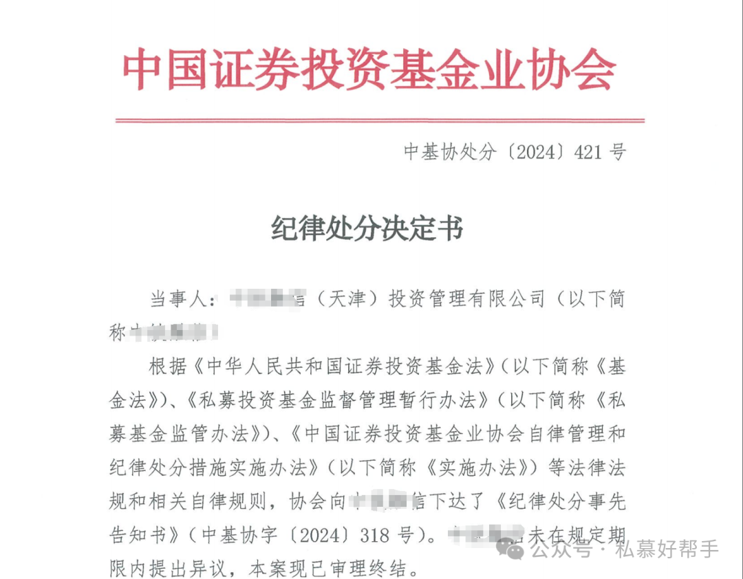 10月11日,中基协发布一则纪律处分决定书,对中***(天津)投资管理有限公司进行警告。